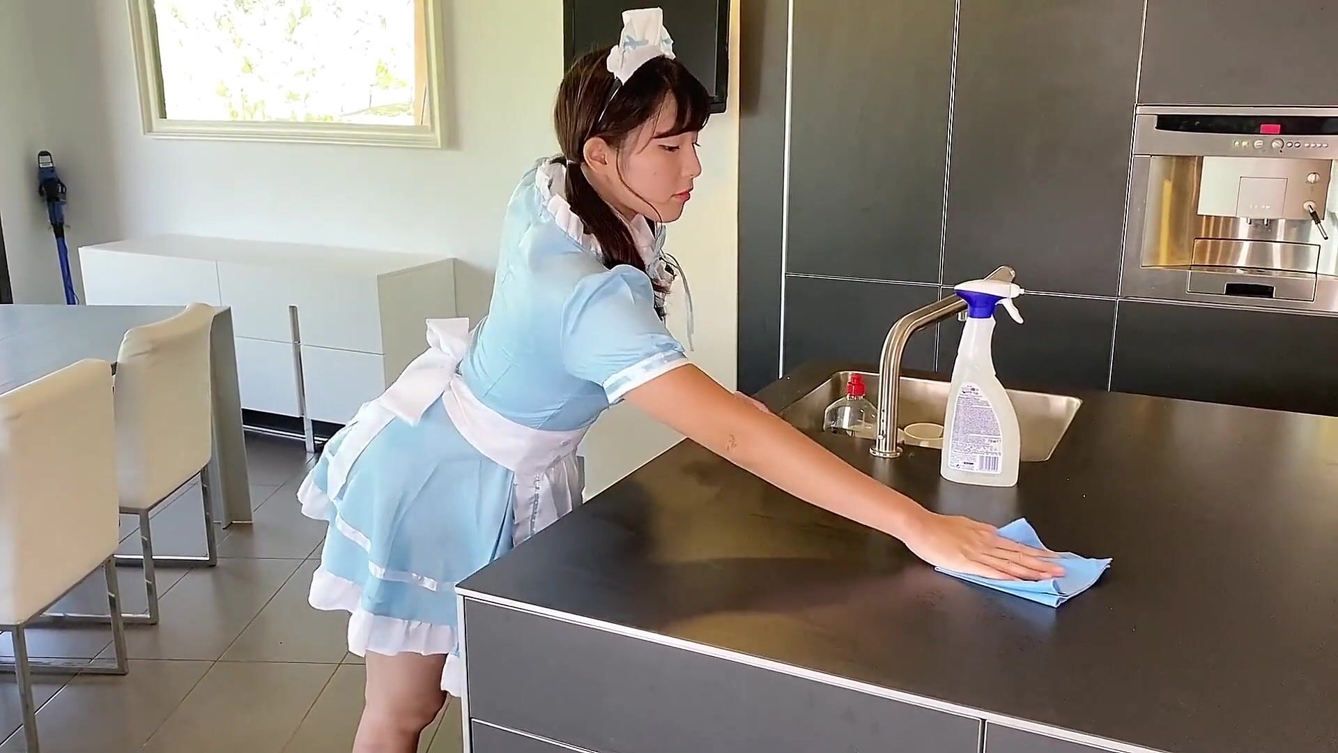 网红反差婊留学生美眉【香蕉妹】剧情演绎,家庭保姆工作中被男主强行进入