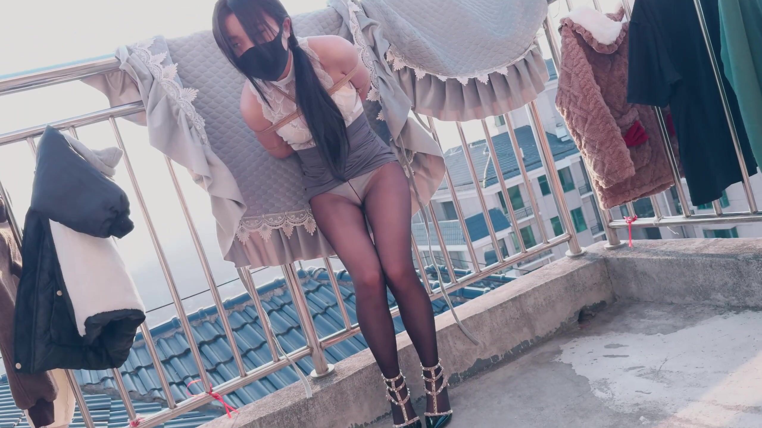 【悠米】《被驯服的美艳少妇4》给少妇派发的室外强羔任务+呼吸限制游戏+内置跳dan+假阳口球塞进嘴里+丝袜全包