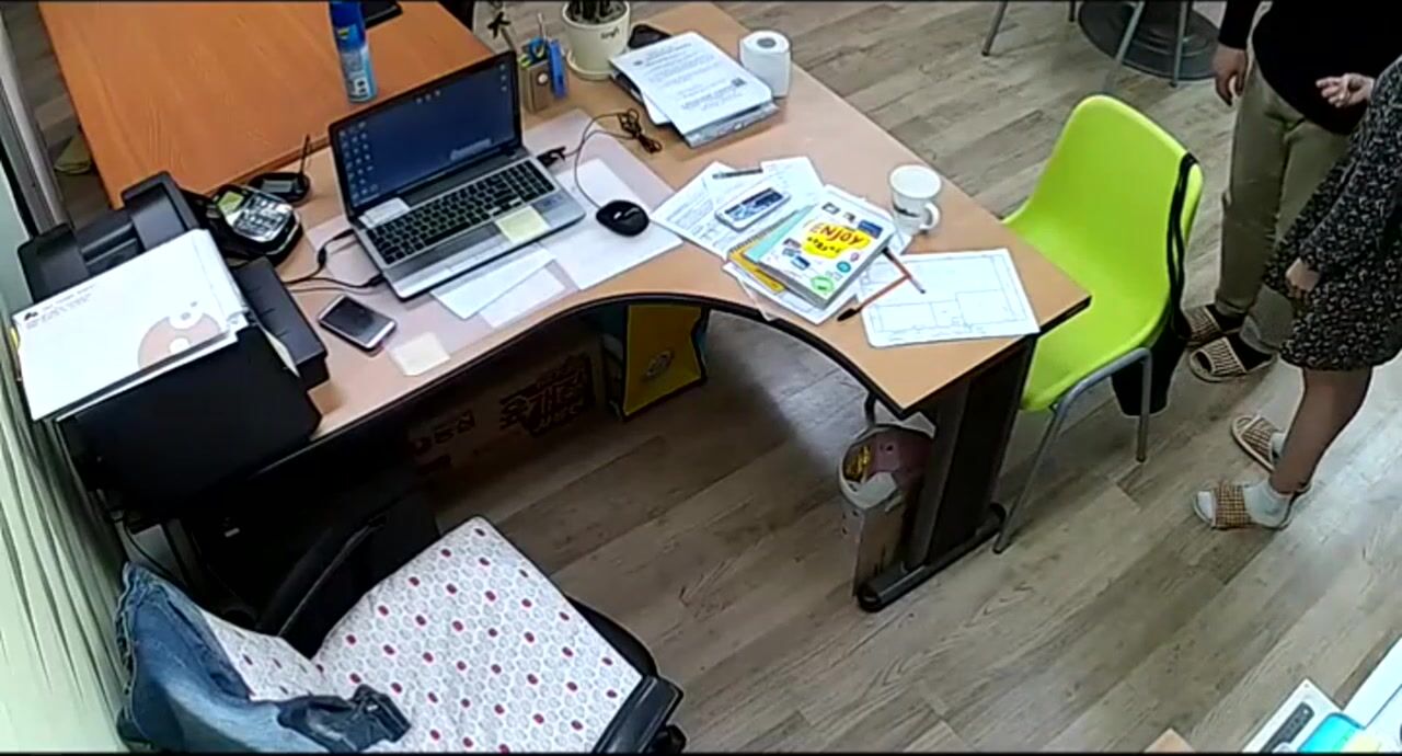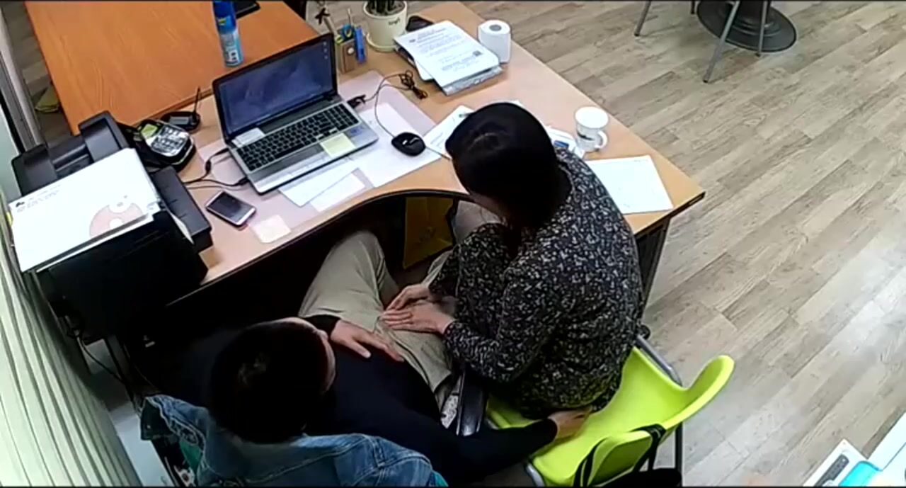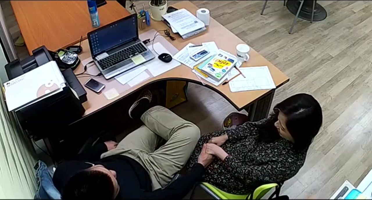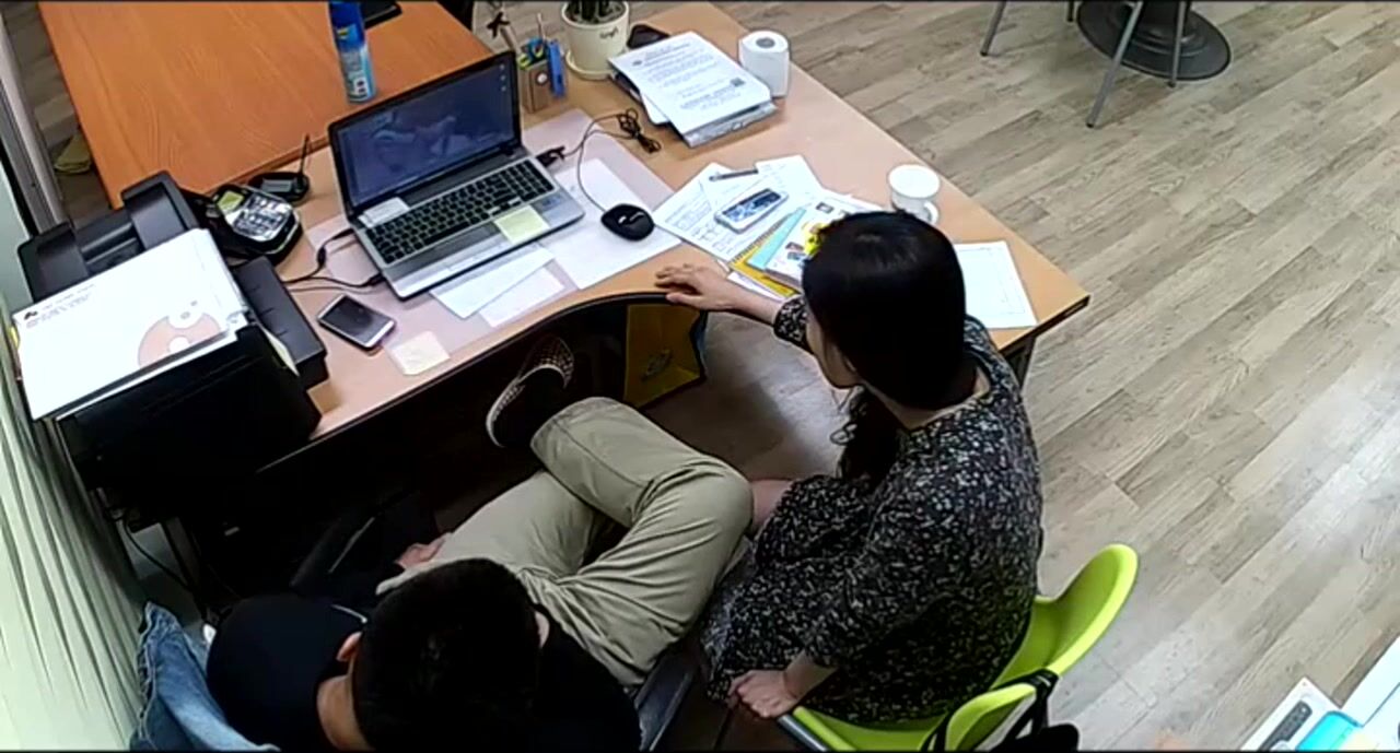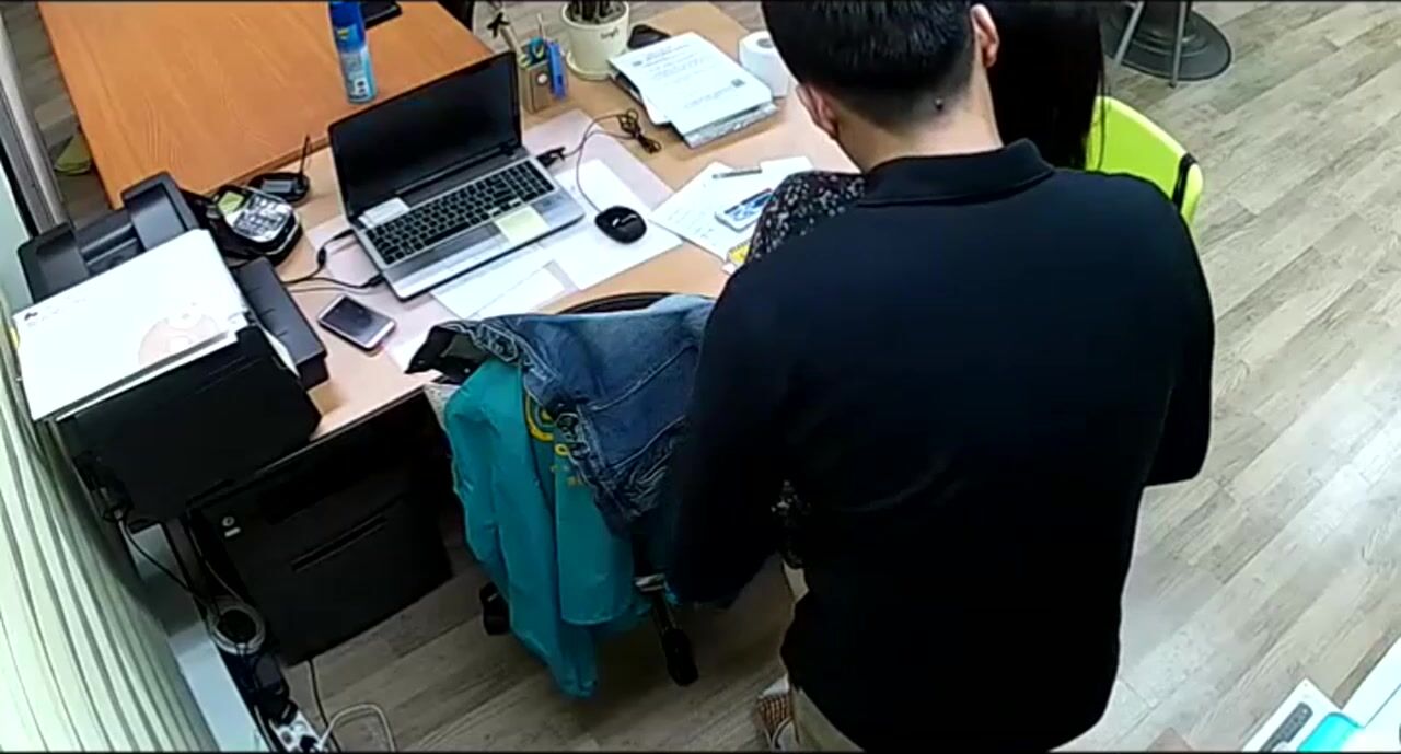 公司摄像头破解偸拍下班后经理与碎花连衣裙文员用电脑看黄片一起研究性爱动作在办公桌前打一炮!